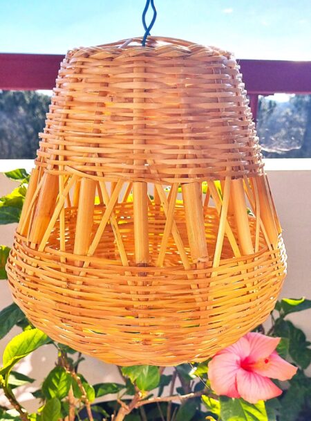 Un magnifique abat-jour en osier, décoration en bambous, tressé à la main.
