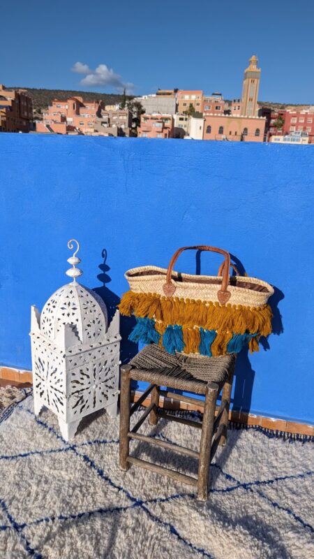 Fabriqué avec soin par des artisans qualifiés, il combine des pompons colorés en fil de coton sur une base de fibres naturelles. Chaque panier reflète l’habileté et la créativité de l’artisan, avec une attention particulière portée à la qualité des matériaux et des détails. Parfait pour ajouter une touche de charme et de couleur à toute vos tenues, ce panier allie fonctionnalité et esthétique, tout en soutenant un savoir-faire ancestral marocain.